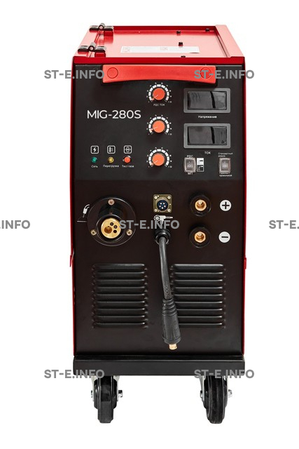 MIG-280S 380V c функцией ручной дуговой сварки MMA и опцией корректной подвода проволоки оборудован логичной управляющей панелью, что облегчает настройку аппарата. Мультифункциональный блок в эргономичном, компактном корпусе относится к категории профессиональных агрегатов, адаптирован к скачкам напряжения в питающей сети.